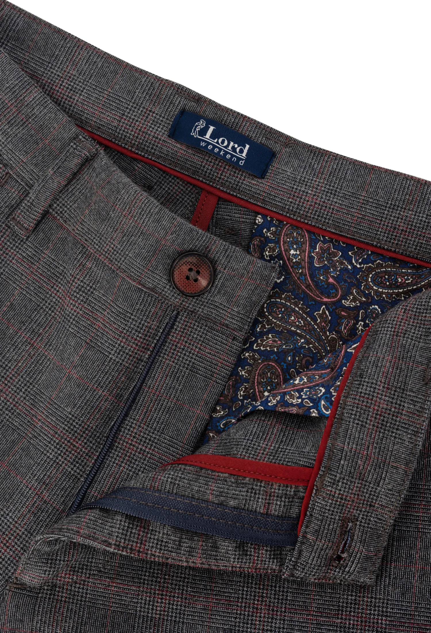 Spodnie męskie Lord – Chinos, kolor popielaty krata R-234