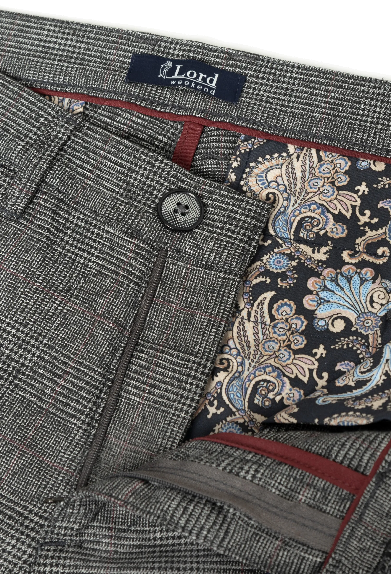 Spodnie męskie Lord – Chinos, kolor popielato-czarna kratka R-246