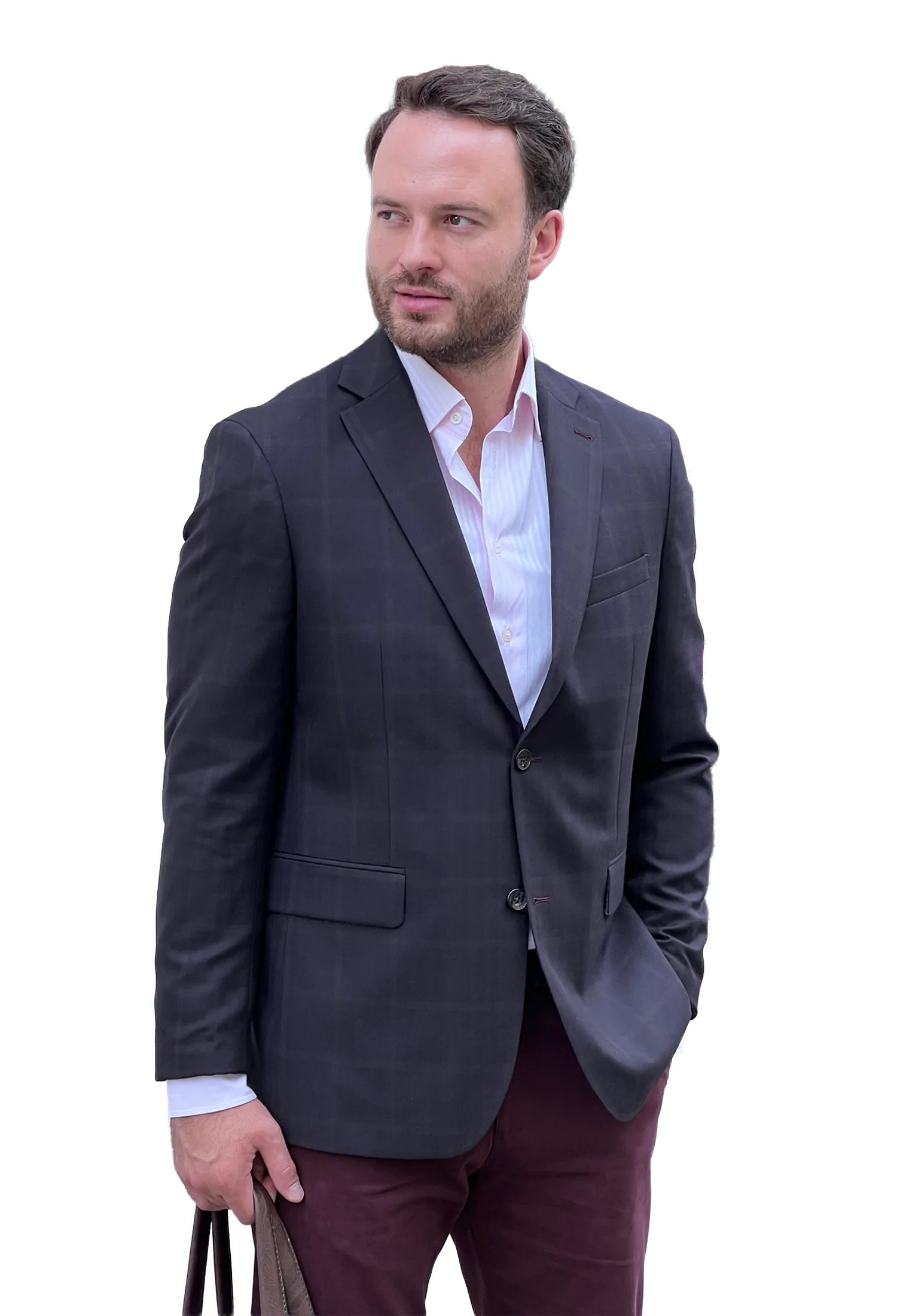 Klasyczna męska marynarka w eleganckim brązowym kolorze z bardzo delikatnym wzorem w kratkę. Wykonana z wysokiej jakości tkaniny z domieszką 30% wełny — zapewnia komfort noszenia, trwałość i nienaganny wygląd przez cały dzień. Elegancka i uniwersalna – pasuje do stylizacji biznesowych i codziennych.