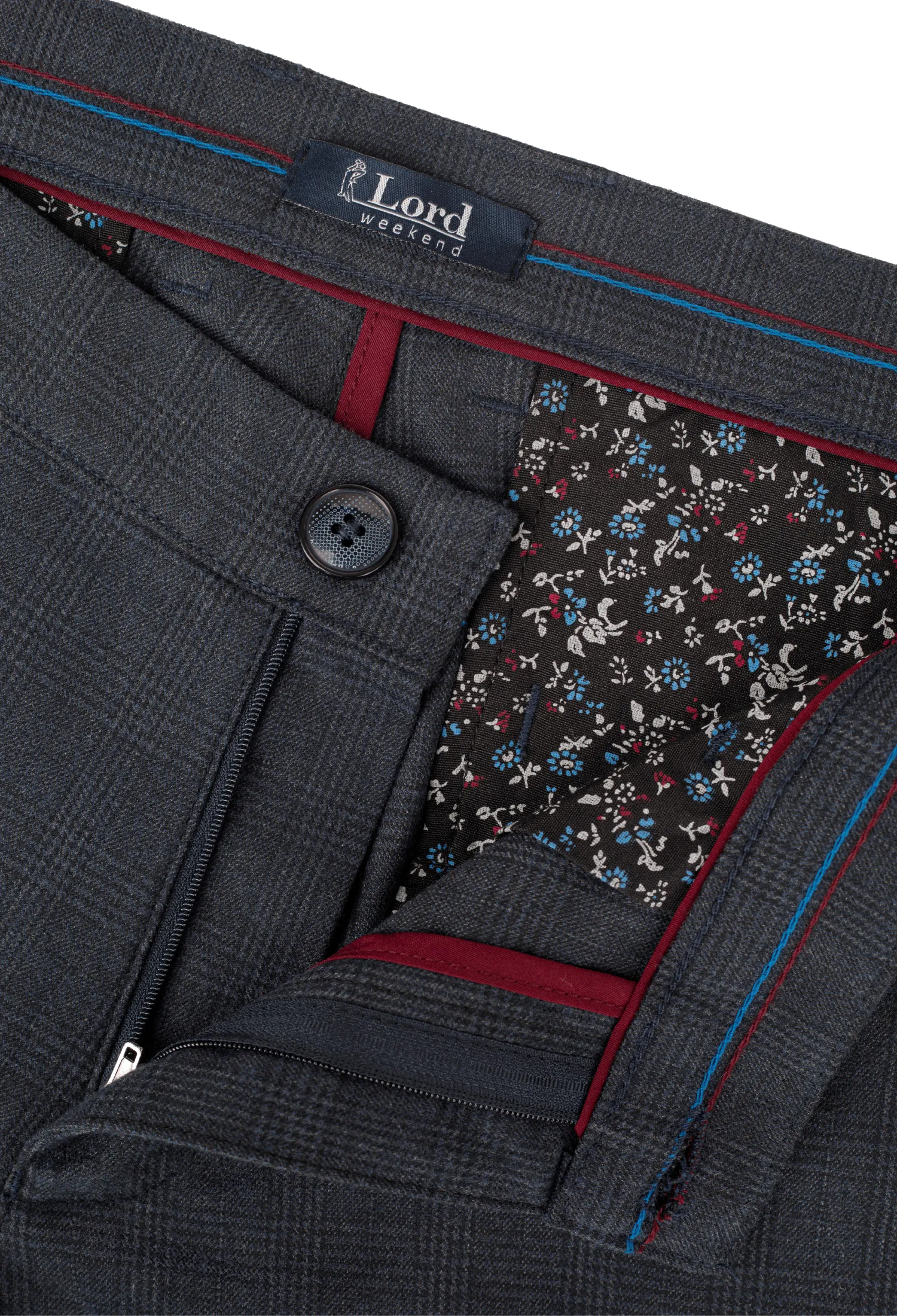 Spodnie męskie Lord – Chinos, kolor granatowo–czarna krata R-265