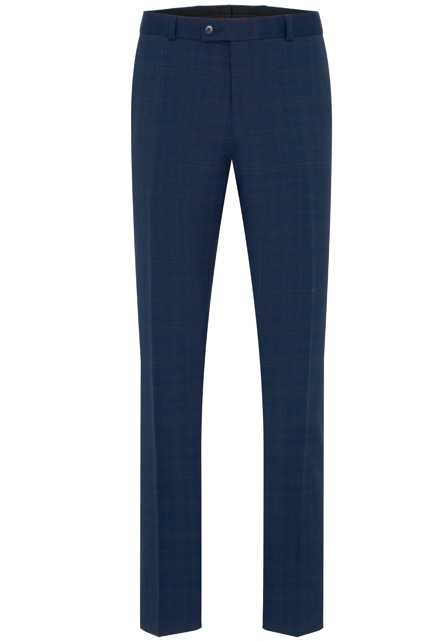 Spodnie męskie garniturowe, granatowe w kratkę Lord – Sp. T-96
