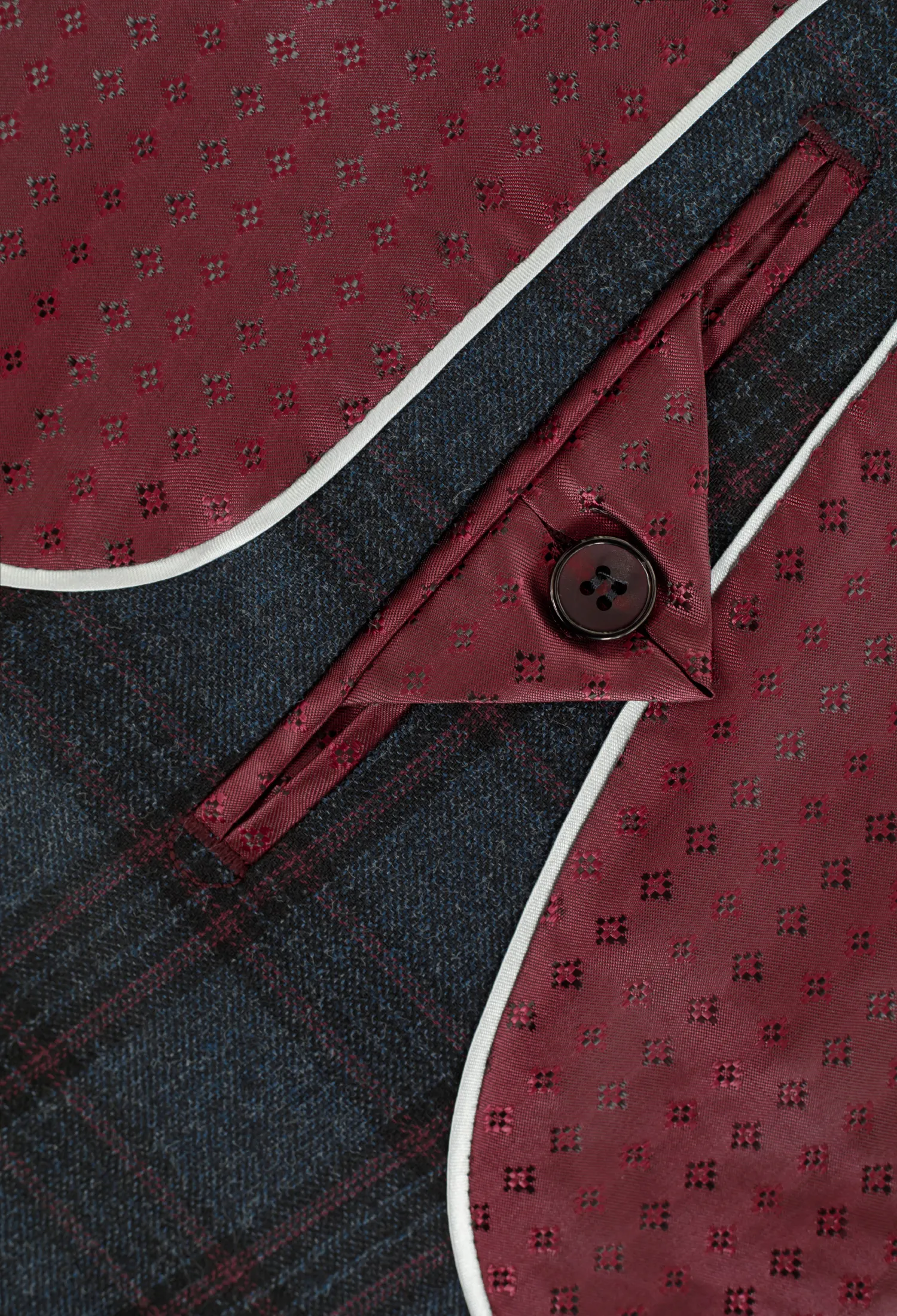 Marynarka męska, całoroczna bordowo-czarna krata M-75