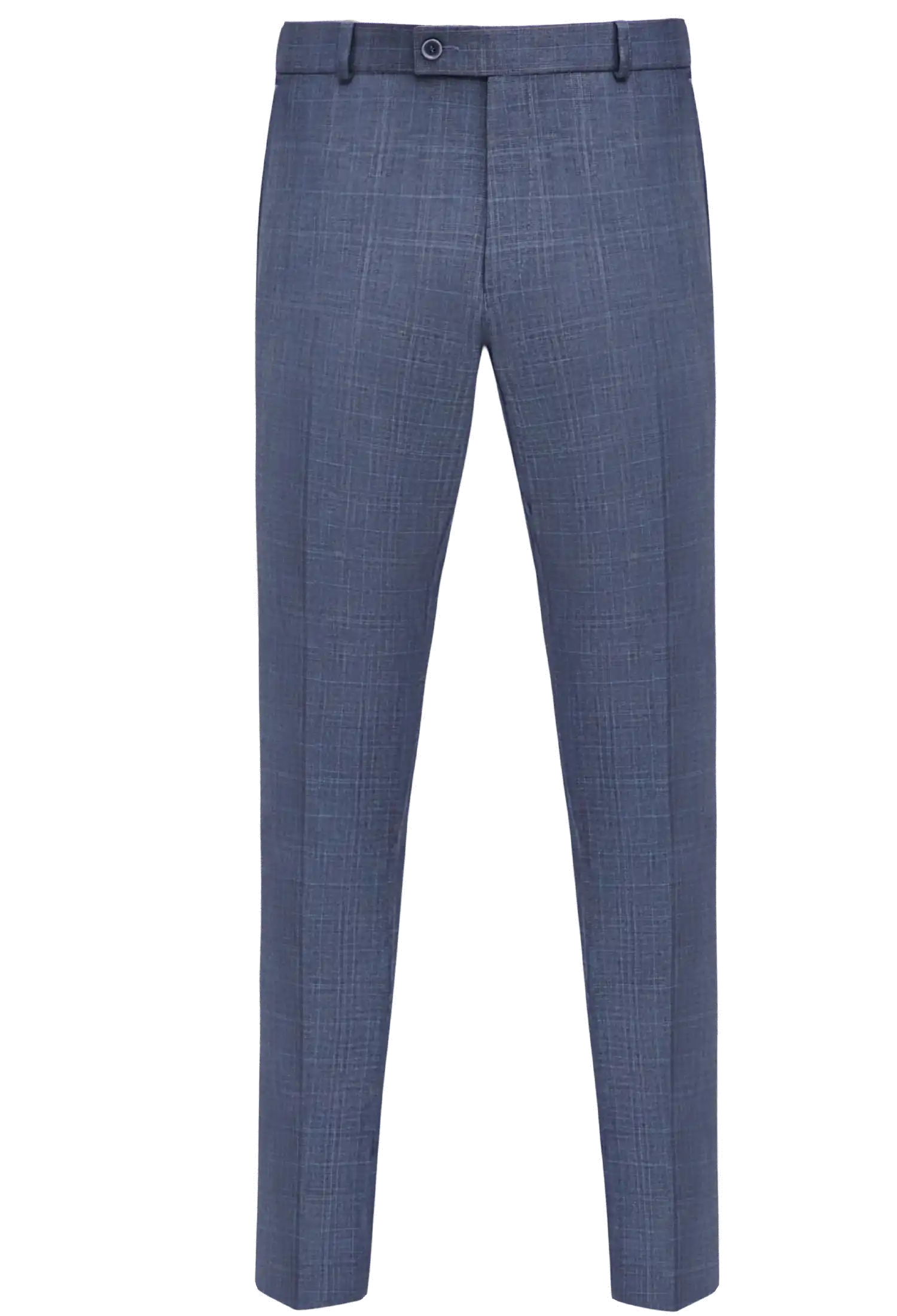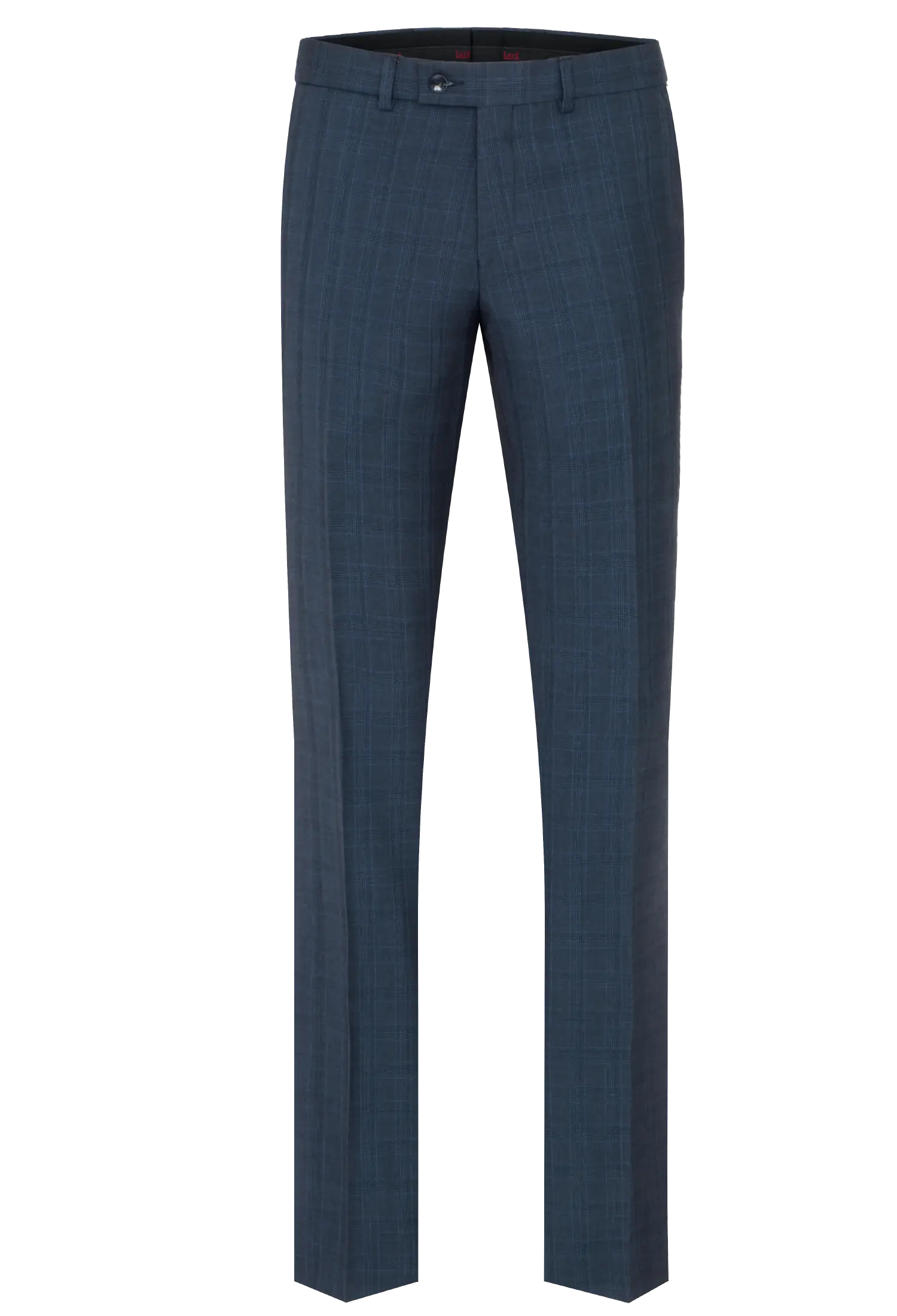 Spodnie męskie garniturowe, granatowo-niebieskie w kratkę Lord – Sp. T-49